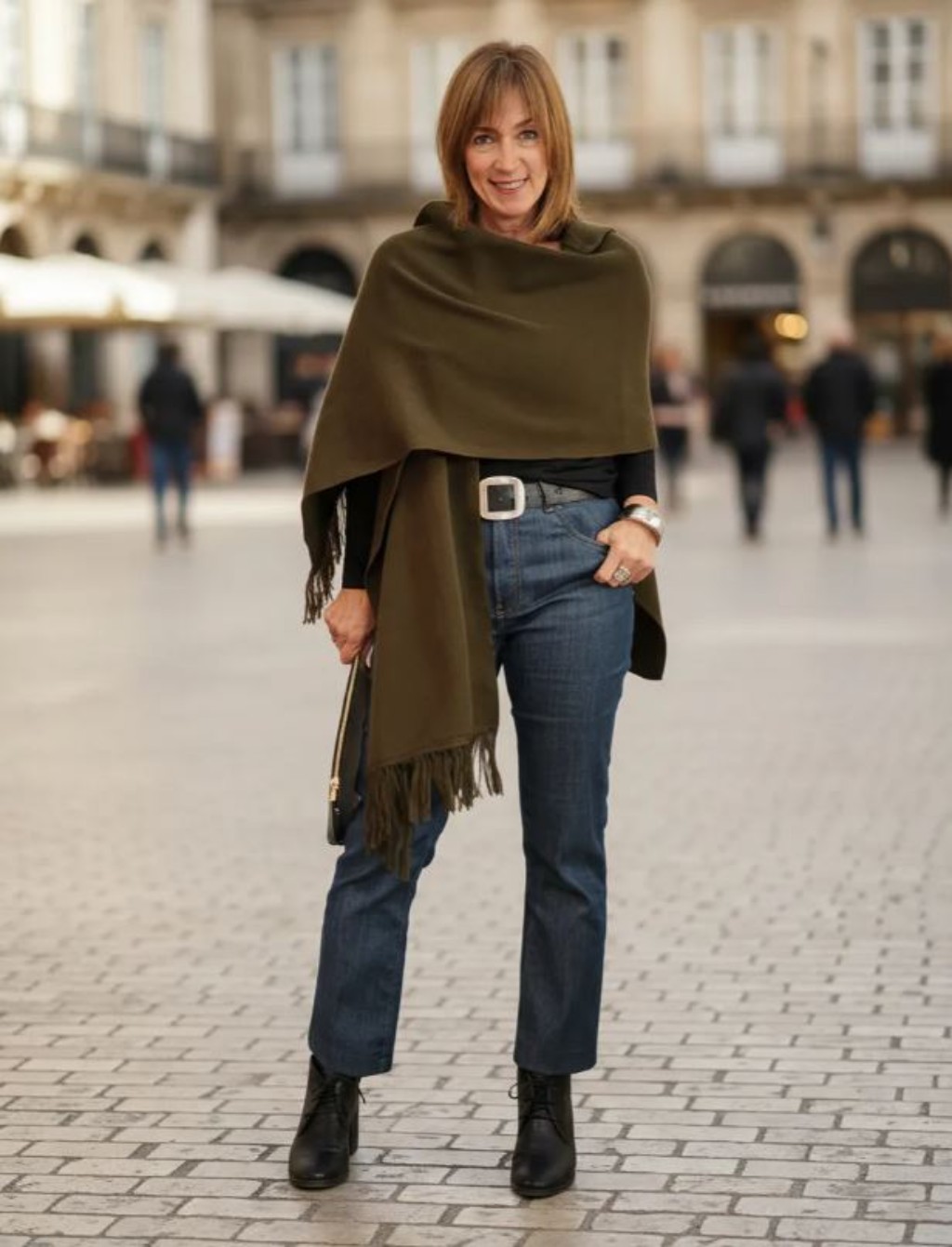 Por eso las ruanas y las pashminas de lana se volvieron un básico absoluto en mi guardarropa. Son prácticas, elegantes y súper fáciles de usar. Y lo mejor: te cubren el pecho, el cuello y los hombros en un segundo, sin complicaciones.
